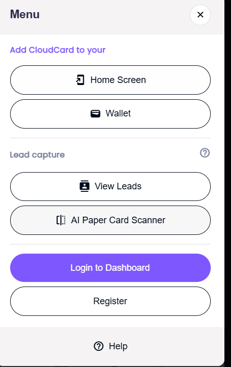 A: The AI paper card scanner is a feature where you can scan paper business cards when a client presents one to you, instead of carrying that card around, you simply scan it via your digital card and AI will extract all the information from your card and add it to your CloudCard dashboard as a lead.